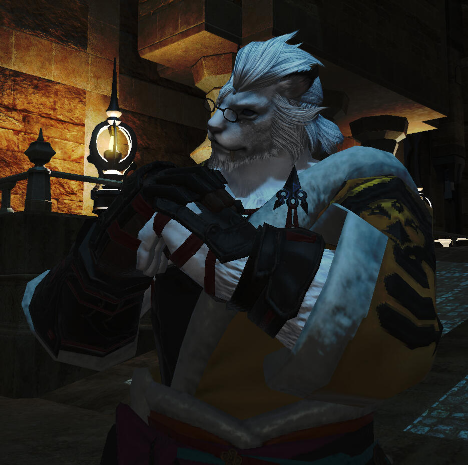 Buhen is glad to meet youBuhen "Bo" Gunji does not know where he came from or if his parents are still alive as he was abandoned as a baby while his nomadic parents were traveling. This never got him down as he was always full of joy and happiness through his life, picked up by a merchant from Kugane who adopted and raised the boy. As he aged up he had interest in becoming a soldier, training in the blade, though he was always drawn towards more tech based things. When he was still a young kit he managed to catch sight of an airship and followed it for as long as he could until he got lost. Curiosity lead him from there and he would stick to the roots bred into him by his parents and live a nomadic life from there, chasing tech wherever he could find it and refusing to give up until he learned how it worked. In his adult life he did still meet his goal of being a soldier, learning to be a gunner for hire, for whoever paid in the most interesting ways.